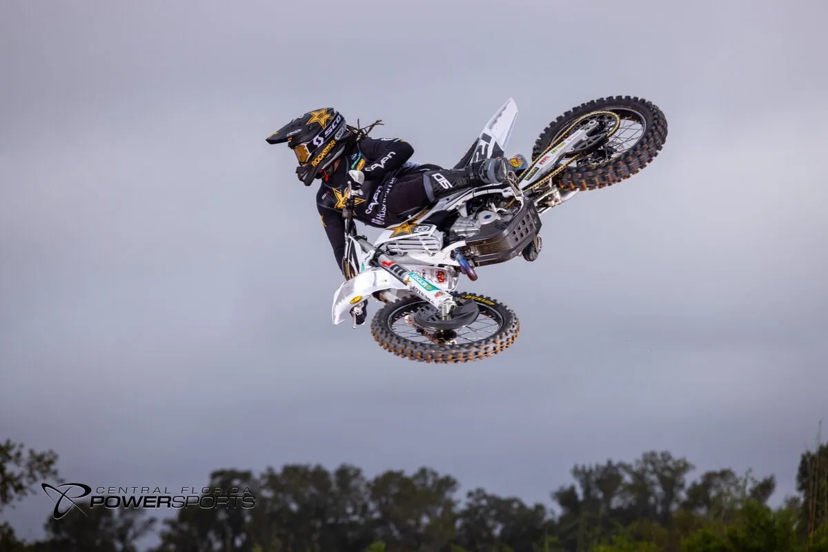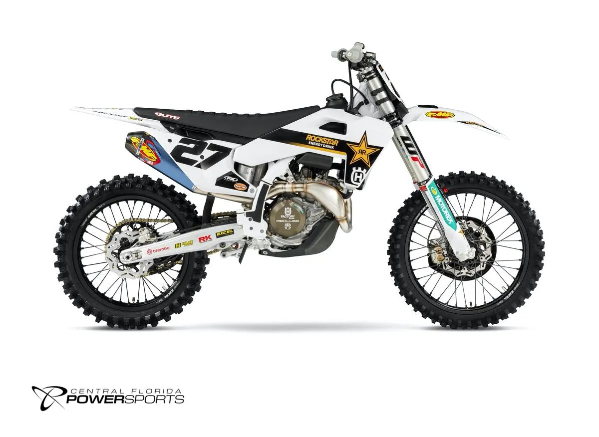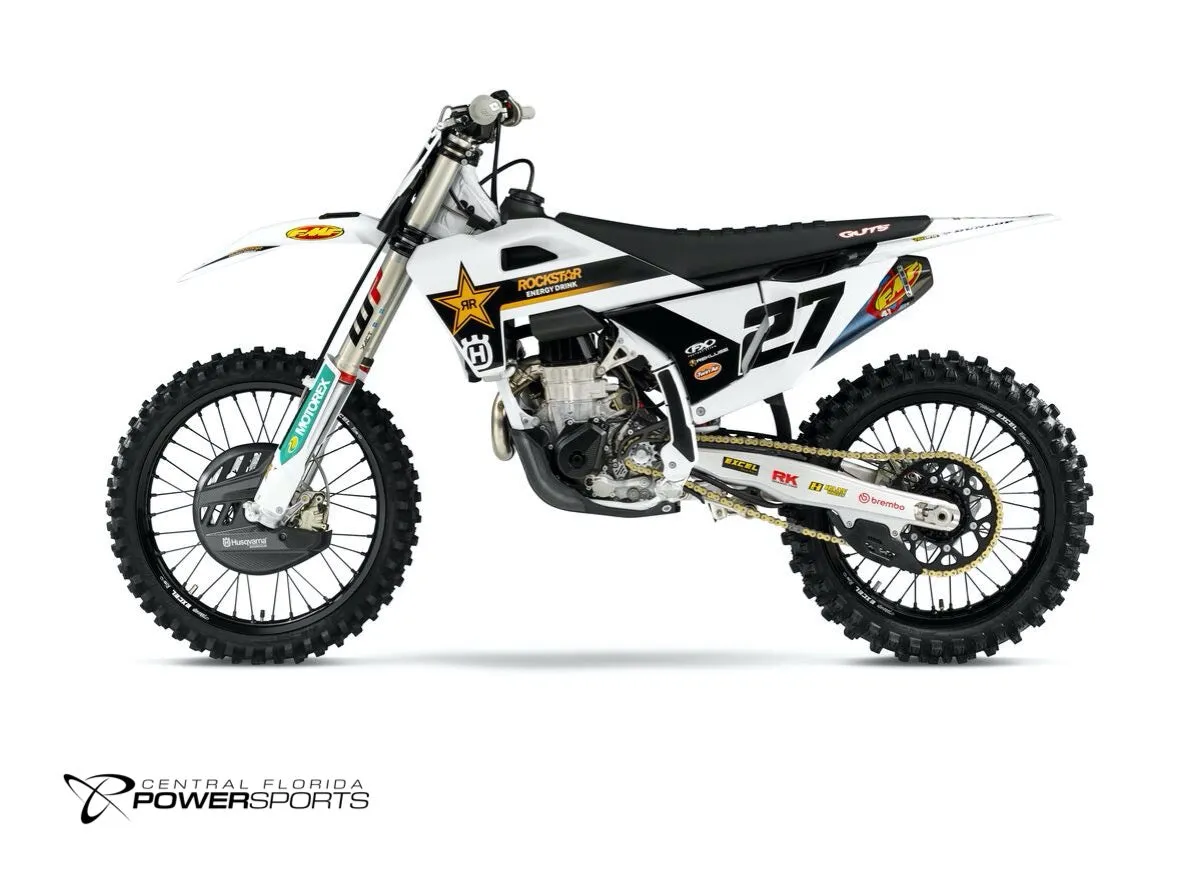 Enhanced with multiple chassis refinements to take on-track performance to an even higher level, the 2024 FC 450 Rockstar Edition sets a new standard for competition-focused motocross machinery. New engine mounts, together with a revised, lighter frame and updated suspension settings improve agility and stability to create a confidence inspiring riding experience. Ergonomics are further improved with the addition of new tank shrouds while advanced rider aids, specifically chosen Technical Accessories, and the latest race team graphics complete the build of this premium machine.
