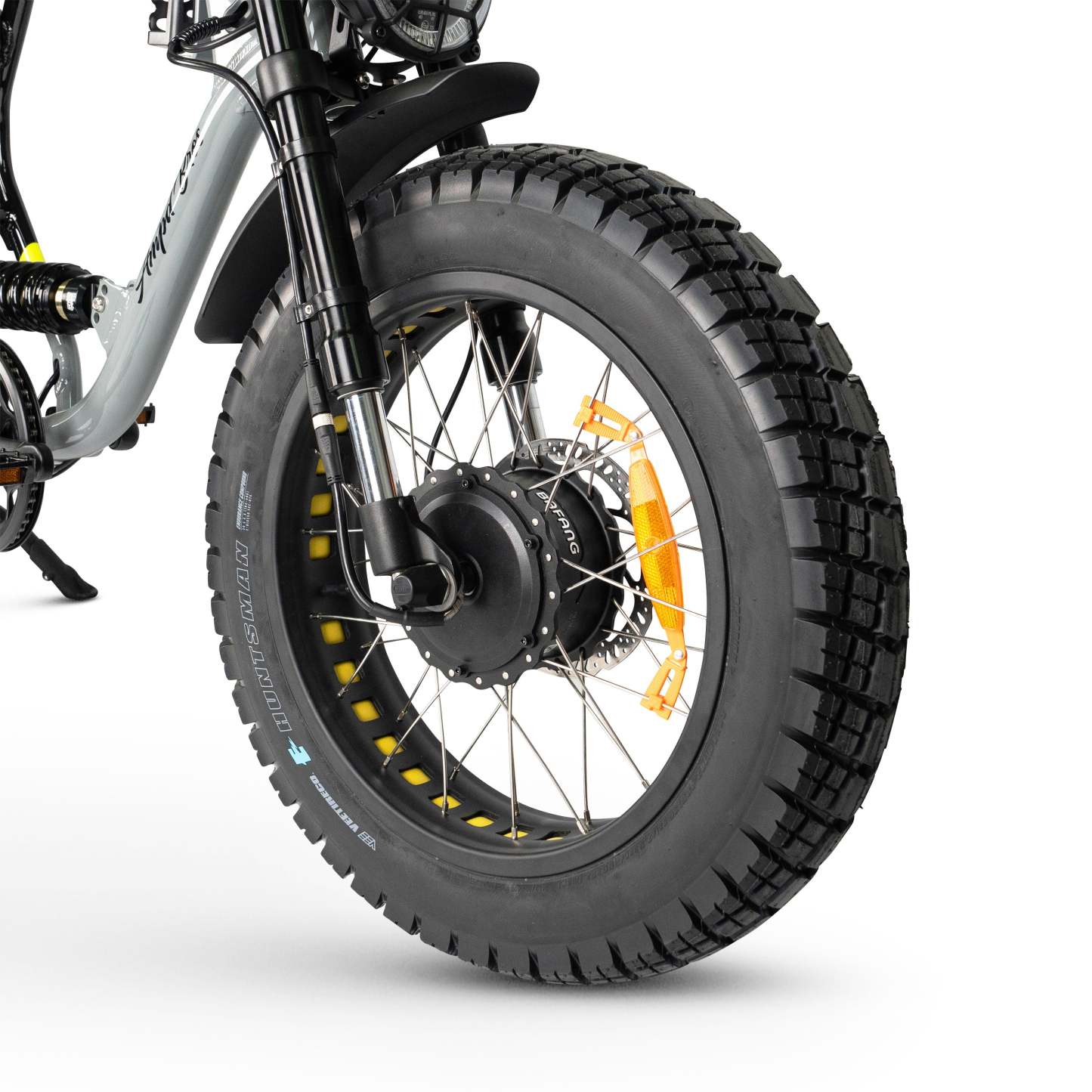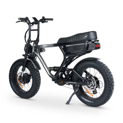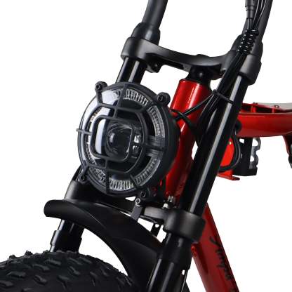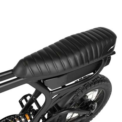 Engineered for both comfort and control, the ACE Demon features a dual suspension system that absorbs shocks from rough terrain, ensuring a smooth and enjoyable ride. The redesigned suspension offers 100mm of seat height adjustment, and the plush quilted seat provides extra comfort for long journeys. Whether you’re cruising on pavement or going off-road, the bike’s all-terrain Huntsman puncture-resistant tires keep you riding confidently.
