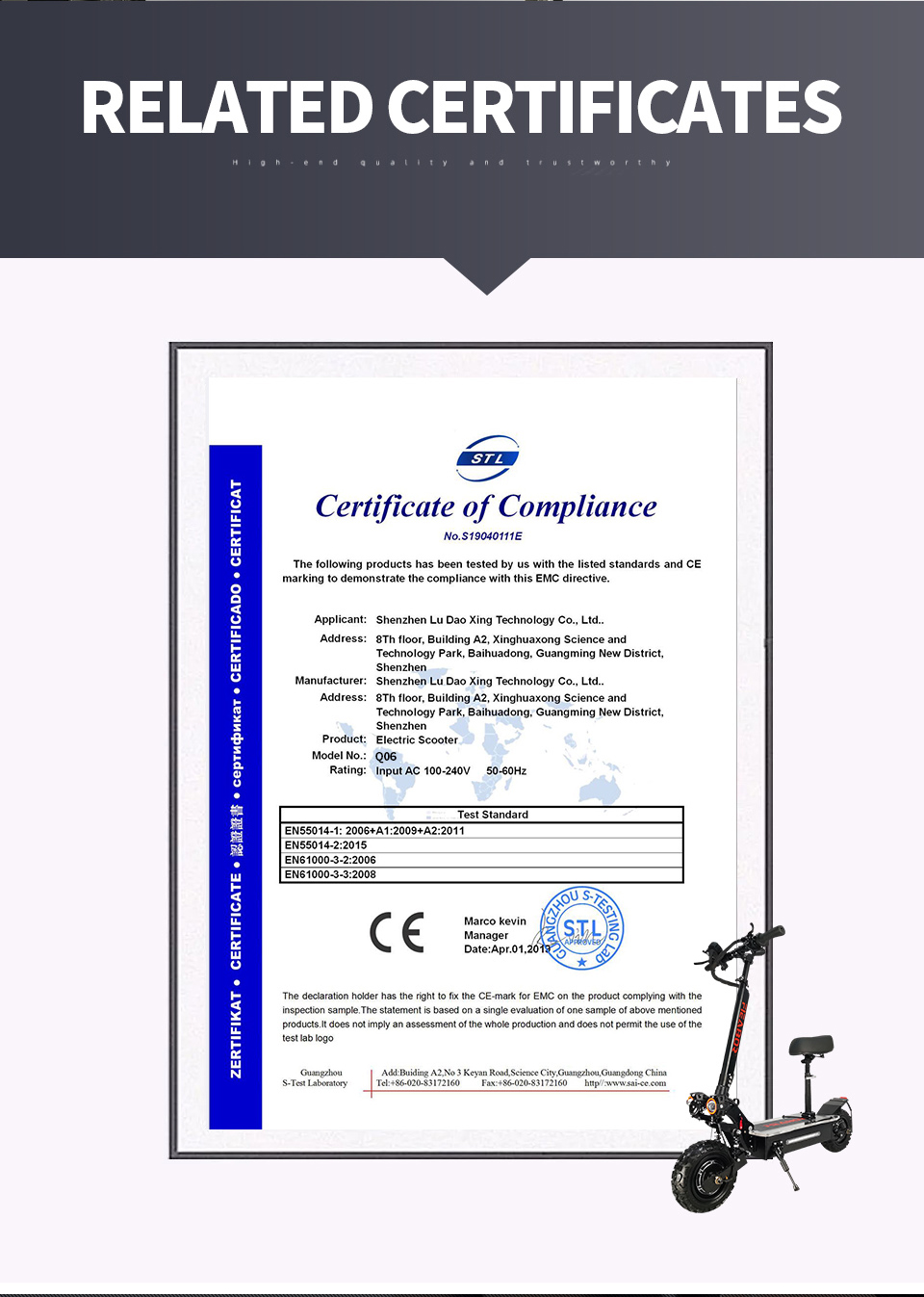 11 inch tires(optional for off-road,road tire)