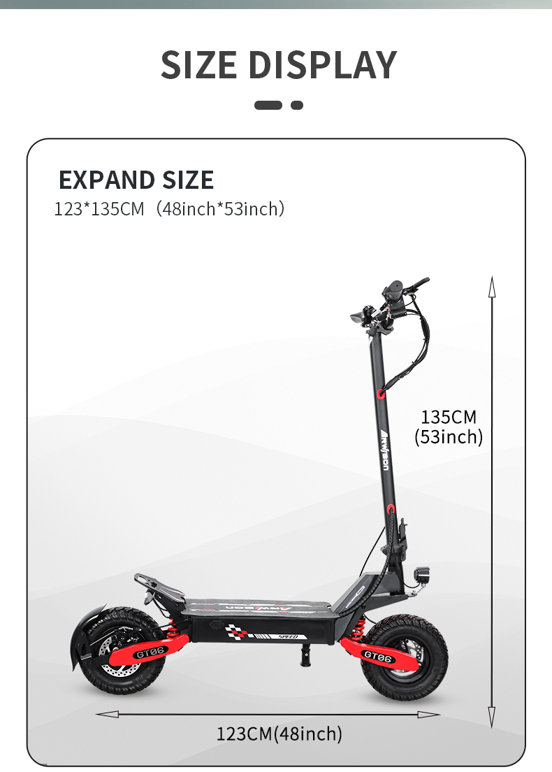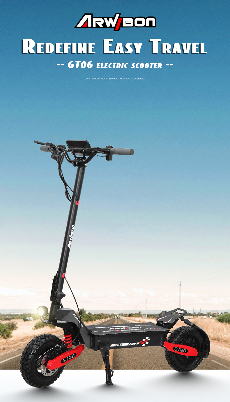 Arwibon GT06 1200w Motor 11 Inch off Road 48v/52v 13ah 23.4ah Battery Double Disc Brake Spring Absober Adult Electric Scooter