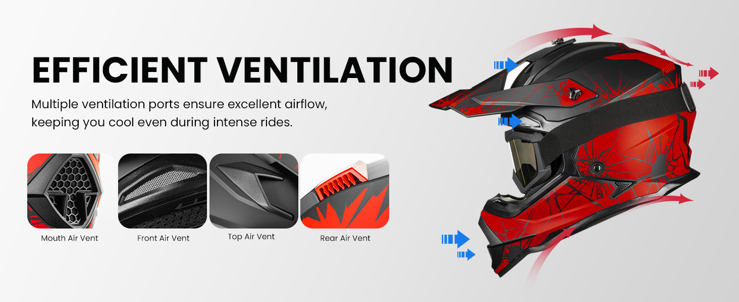 The motocross helmet for men and women meets DOT and FMVSS 218 safety standards, offering solid protection and impact resistance. Inside, a removable and washable liner keeps ride fresh, making long rides more comfortable and clean.