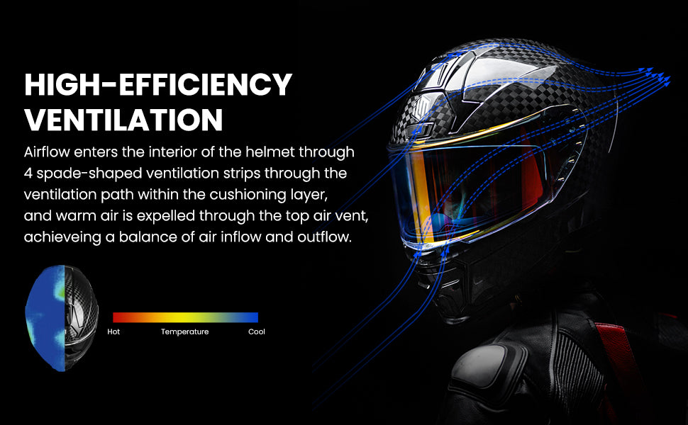 The lightweight, aerodynamic Carbon Fiber shell slices through the wind and remains stable on your head, bringing a new riding experience.