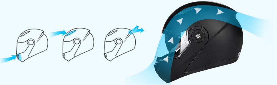 Wide View - The modular flip-up motorcycle helmet is equipped with an anti-scratch and wide angle clear visor for a great view. It also comes with a dark visor which can be used to effectively resist strong sunlight in the daytime.