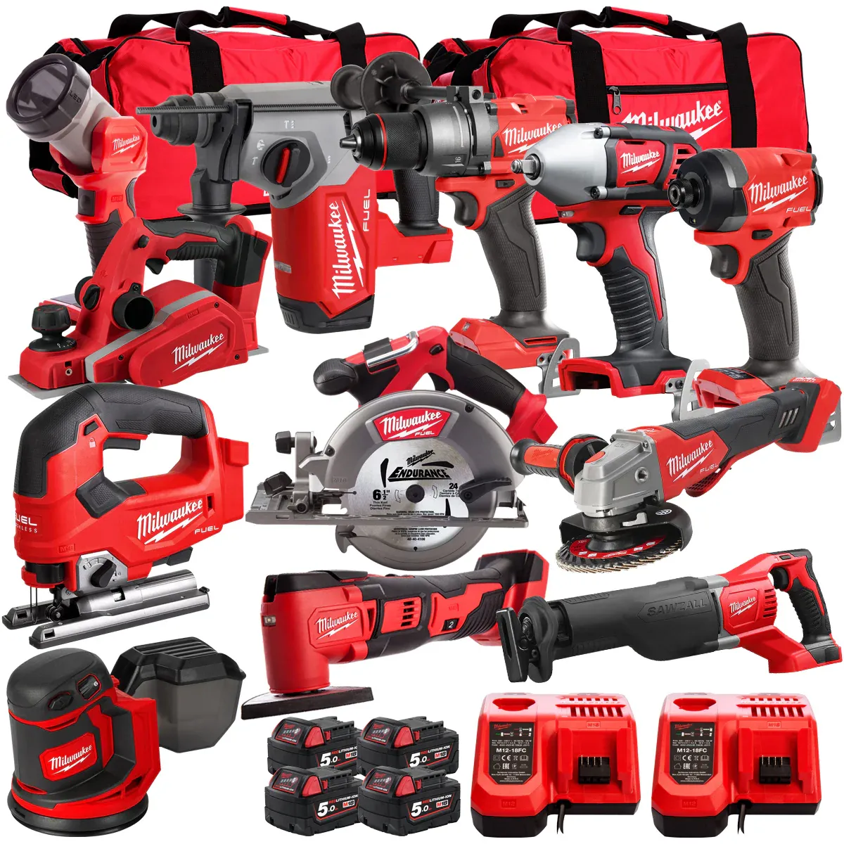 Milwaukee 18V Cordless 12 Piece Tool Kit with 4 x 5.0Ah Batteries & Charger in Bag T4TKIT-13503