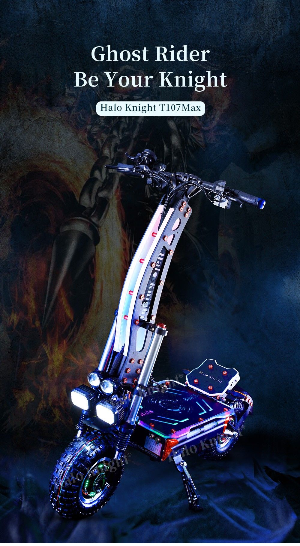 - Professional, stunning lighting effects: Square Lights, Apollo Lamps, High Beam and Low Beam Lights, Strobe Lights, Double Flash Lights, Front and Rear Turn Signals, Hub Lights, Corner Lights, Driving Lights, and Brake Lights, Full-body RGB Lights for The Upright, Deck, and Footrest, controllable via a remote controller. Artistic design, beautiful lights for a fashion ride.