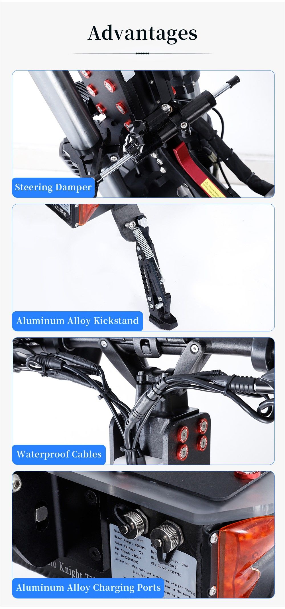 - Guoxuan 72V 50Ah Li-ion battery ( included in product ) for max 125km mileage.