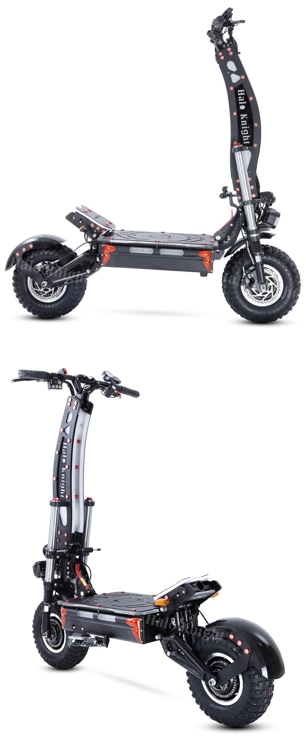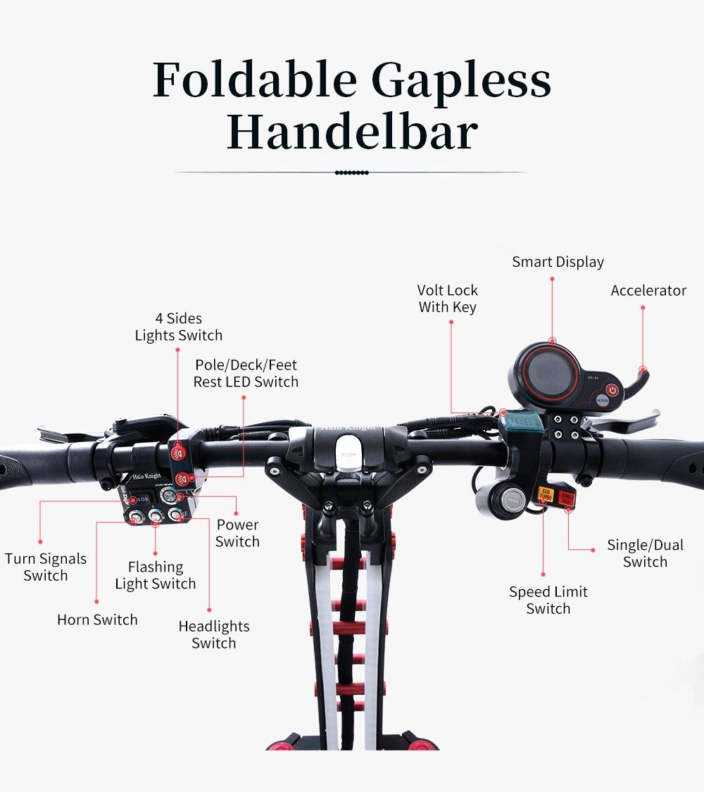 - Professional, stunning lighting effects: Square Lights, Apollo Lamps, High Beam and Low Beam Lights, Strobe Lights, Double Flash Lights, Front and Rear Turn Signals, Hub Lights, Corner Lights, Driving Lights, and Brake Lights, Full-body RGB Lights for The Upright, Deck, and Footrest, controllable via a remote controller. Artistic design, beautiful lights for a fashion ride.